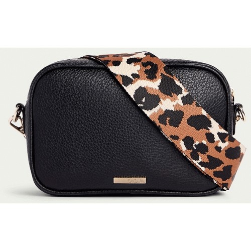 SACHA Leopard Strap Crossbody Camera Bag in Black