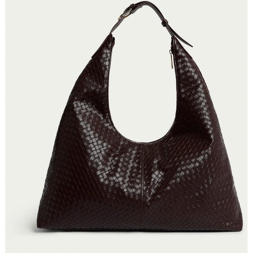 SACHA Faux Leather Woven Shoulder Bag in Brown