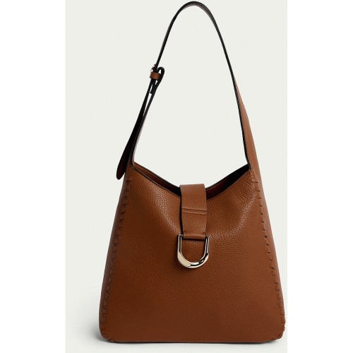 SACHA Textured Shoulder Bag with Gold Buckle in Brown