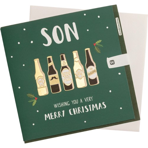 Son Christmas Card Green with Beer Bottles Greeting Card