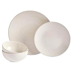 Embossed Heart Dinner Set Cream
