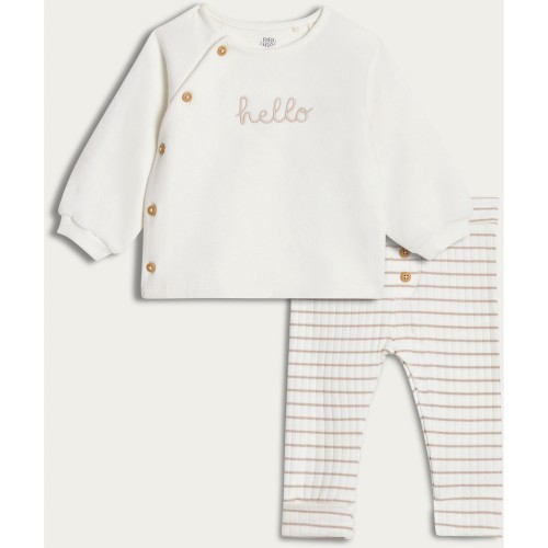 2-Piece Cotton Rich Hello Baby Jumper and Leggings Set in White