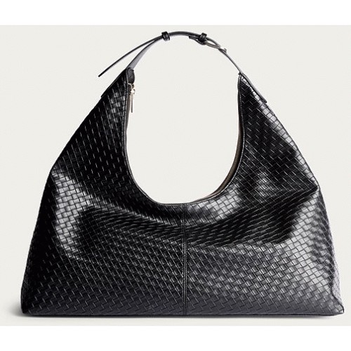 SACHA Faux Leather Woven Shoulder Bag in Black