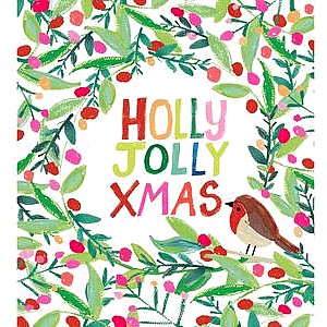 Holly Jolly Xmas Holly & Robin Christmas Design Greeting Card