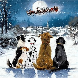 Christmas Card with Dogs in the Snow Waiting for Santa Greeting Card