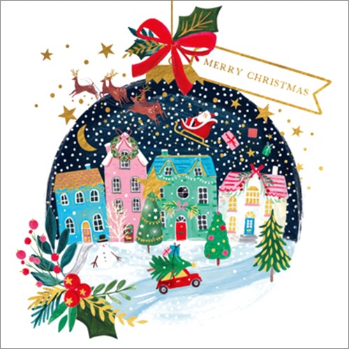 Town scene with Santa's sleigh charity Christmas card 5 pack