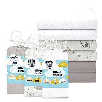 Safe Nights Fitted Sheet Bundle Celestial Grey & White
