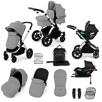 Stomp Luxe Travel System Cirrus Car Seat & ISOFIX Silver Pearl Grey Black