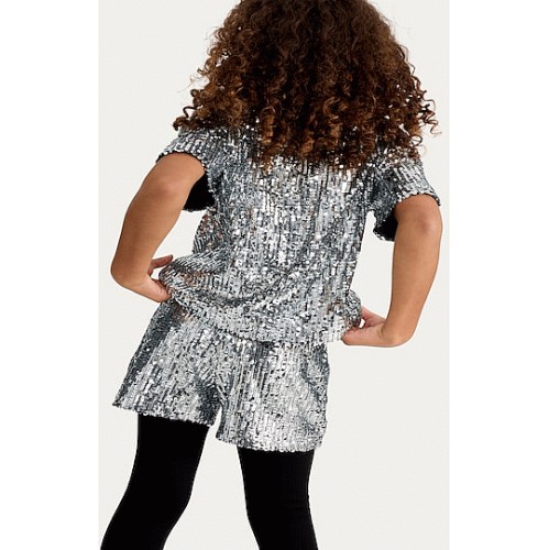 F&F Girls 2-Piece Sequin Top and Shorts Set in Silver