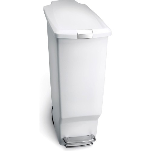 Slim White Plastic Pedal Bin