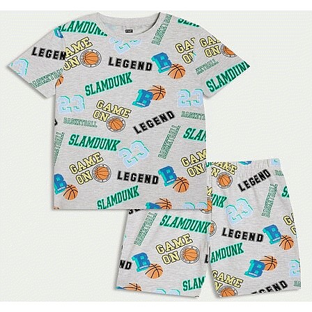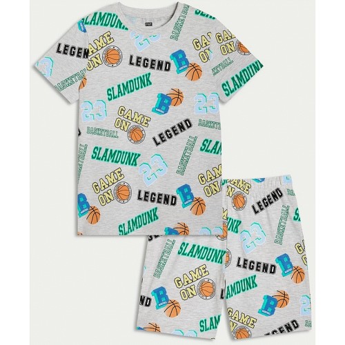 Boys Pure Cotton Basketball Print Pyjama Set in Grey