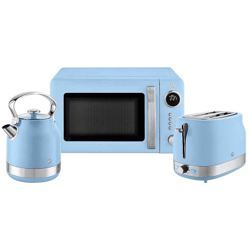 RetroRevive Traditional Kettle 2 Slice Toaster and Microwave Blue and Chrome Trim