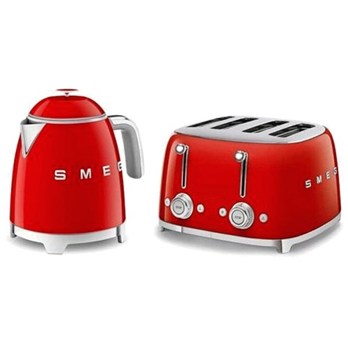 50's Style Mini Kettle and 4 Slice Toaster in Red