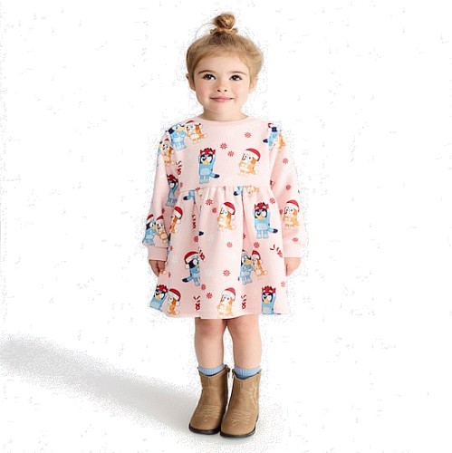 Bluey Christmas Print Sweat Dress in Pink