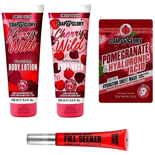 Included: Lim Ed Cherry Wild Body Scrub 200ml, Lim Ed Cherry Wild Body Butter 200ml, Made You Blush Liquid Blusher - Twinkle Rose