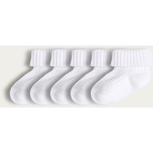 Baby 5-Pack Cotton Rich Ribbed Roll Top Socks in White