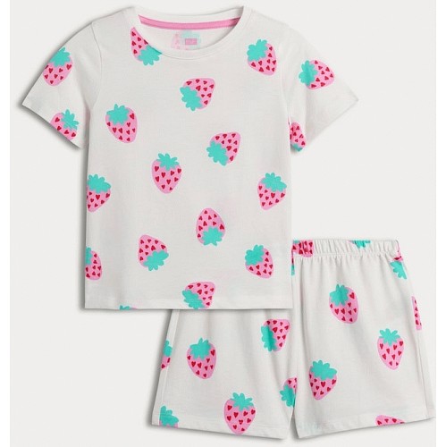 Girls 2-Piece Pure Cotton Strawberry Print Pyjama Set in Cream