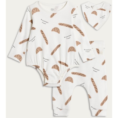 3-Piece Cotton Rich Breakfast Time Bodysuit Leggings and Bib Set in White