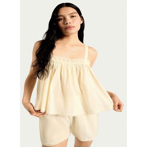 Pure Cotton Lace Trim Pyjama Set in Cream
