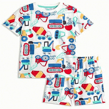 Boys Pure Cotton Construction Pyjama Set in Cream