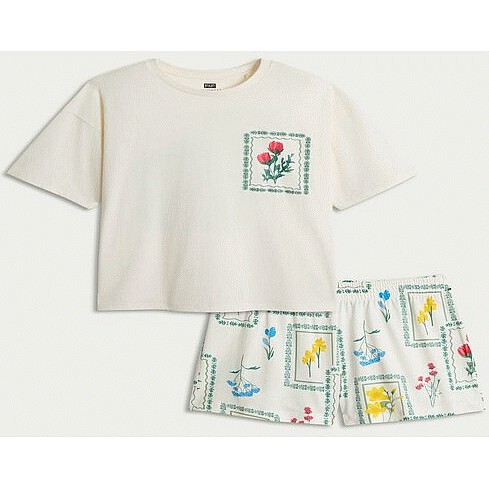 Pure Cotton Floral Print Short Pyjama Set in Cream