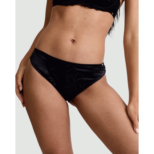 Embroidered Panel High Leg Knicker in Black