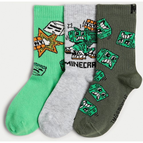 Minecraft 3-Pack Cotton Blend Ankle Socks in Green Multi
