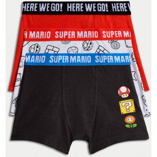 Super Mario 3-Pack Cotton Rich Trunks in Black Multi