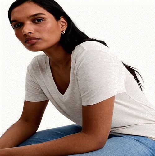 Pure Cotton Crew Neck T-Shirt in Multi Blue