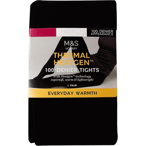 Lightweight Black Acrylic Womens 100 Denier Thermal Heatgen Opaque Tights Size: M