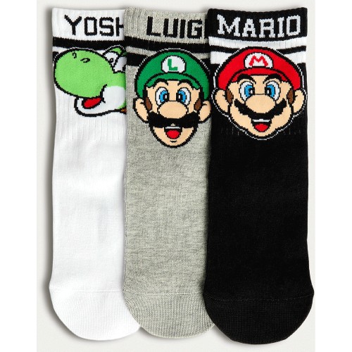 Super Mario 3-Pack Character Ankle Socks in Black Multi