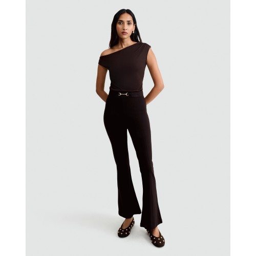 Flared Gold Chain Buckle Trousers in Chocolate