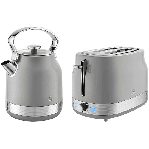 RetroRevive Traditional Kettle 3KW and 2 Slice Toaster Grey and Chrome Trim