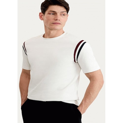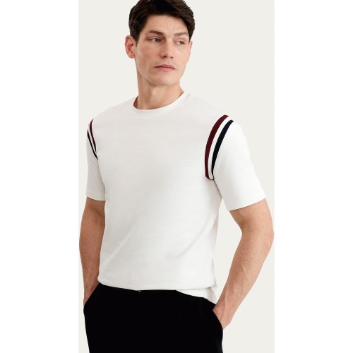 Pure Cotton Colour Block Short Sleeved T-Shirt in Cream