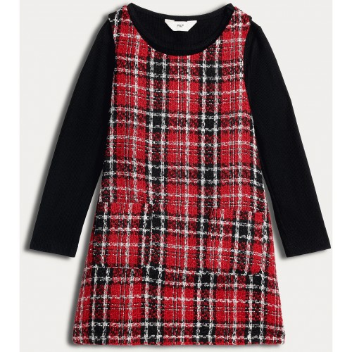 F&F Girls 2-Piece Tartan Pinafore Dress and Top Set in Red