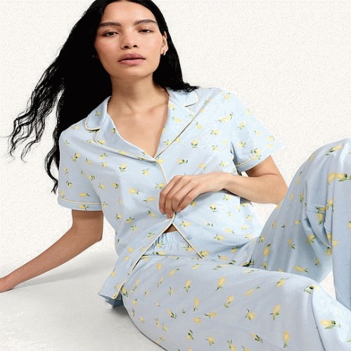 Pure Cotton Lemon Print Pyjama Set in Multi Blue