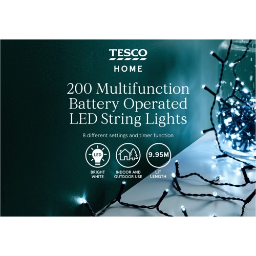 200 Battery Multifunction Bright White Timer LED Christmas Lights