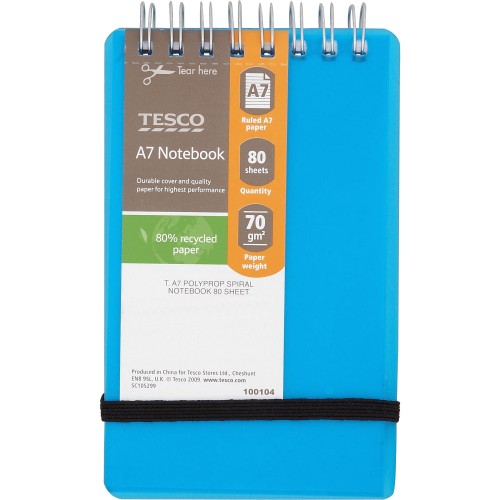 Tesco A7 Polypropylene Spiral Notebook 160 Pages