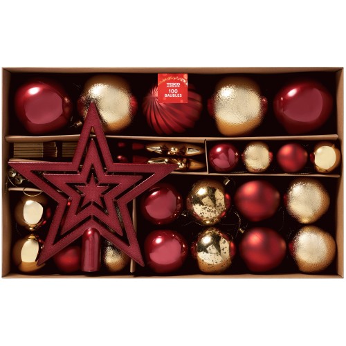 Tesco Tarnished Gold Baubles Christmas Decorations