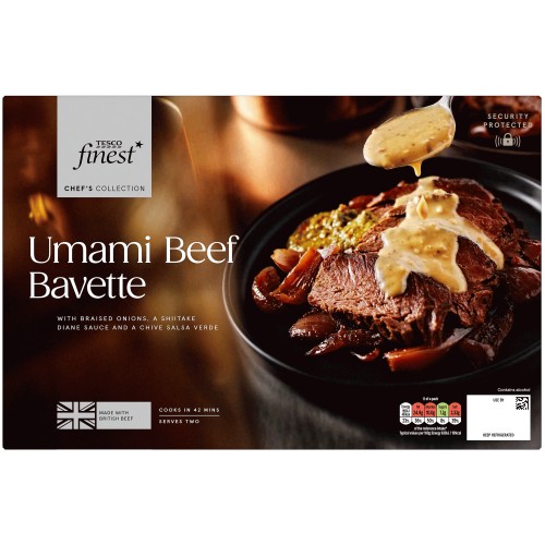 Chef's Collection Umami Beef Bavette with braised onions shiitake Diane sauce and chive salsa verde