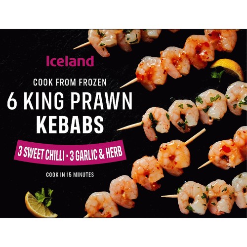 6 King Prawn Kebabs 3 Sweet Chilli 3 Garlic & Herb