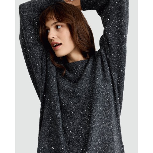 Batwing Sleeved Metallic Jumper in Grey