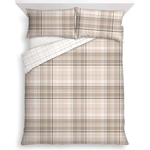 TESCO NATURAL CHECK DUVET SET DOUBLE