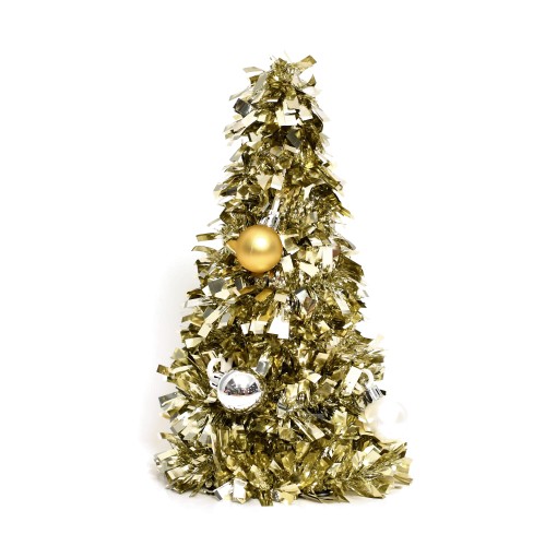 Pre Lit Decorated Pop Up Gold Tinsel Christmas Tree 6ft