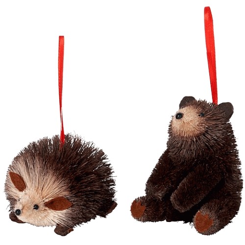 Bristle Bear Hedgehog Hanging Christmas Decoration Assortment
