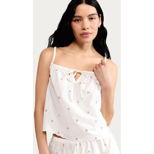 The F&F Edit Pure Cotton Floral Embroidered Camisole Pyjama Top in White