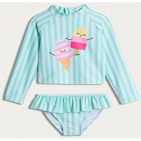 F&F Girls 2-Piece Ice Cream Print Striped Swim Set in Turquoise