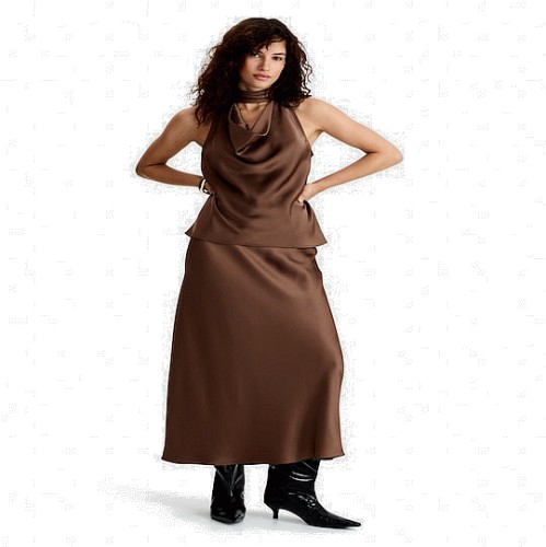 The F&F Edit Satin High Cowl Neck Sleeveless Blouse in Brown