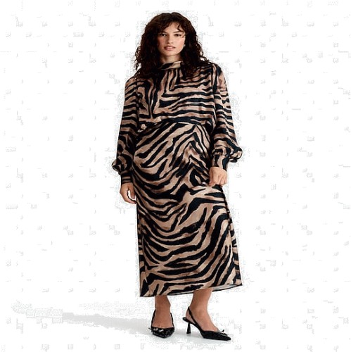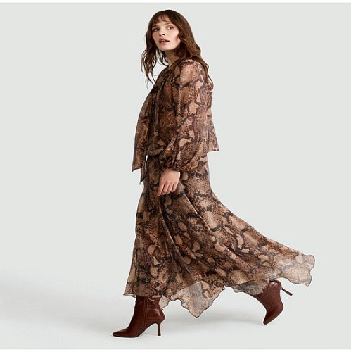 Snake Print Handkerchief Hem Midi Skirt in Multi Brown