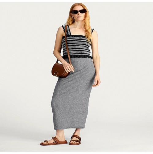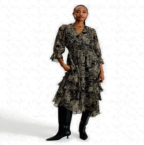 The F&F Edit Paisley Print Tiered Midi Dress in Multi Black White